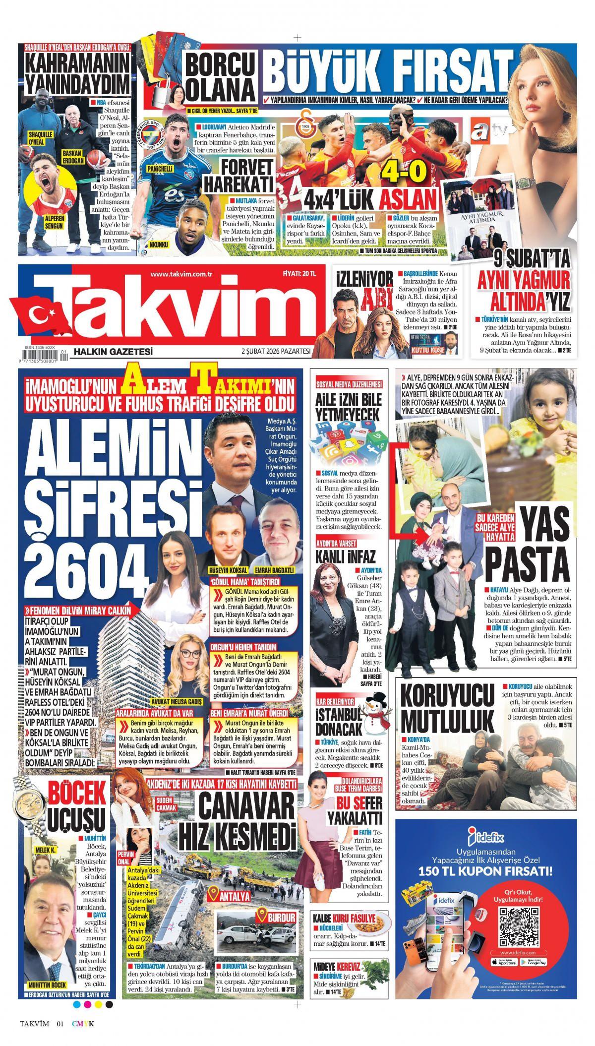 Takvim Gazetesi 2 Şubat 2026 Günü Manşeti - Bağımsız Basın
