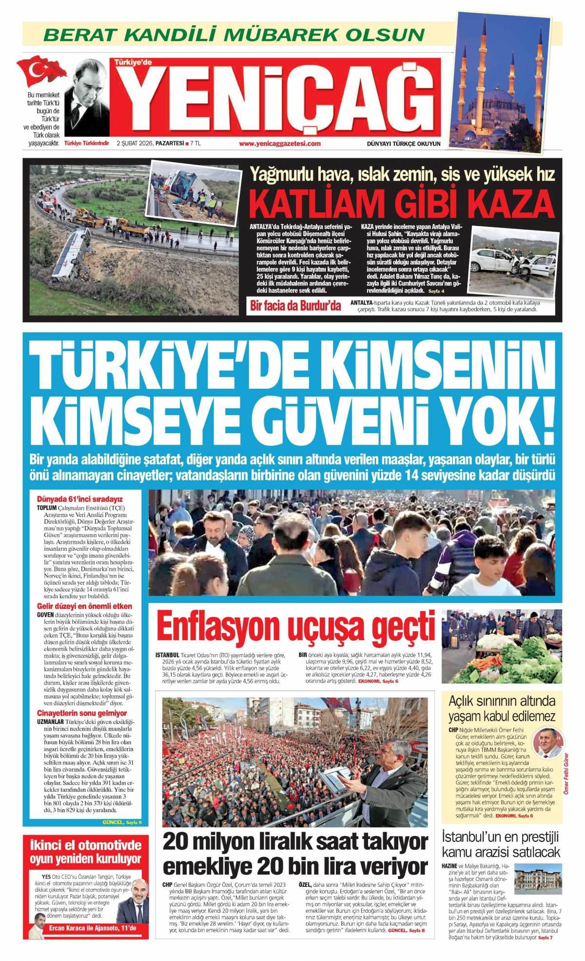 Yeni Çağ Gazetesi 2 Şubat 2026 Günü Manşeti